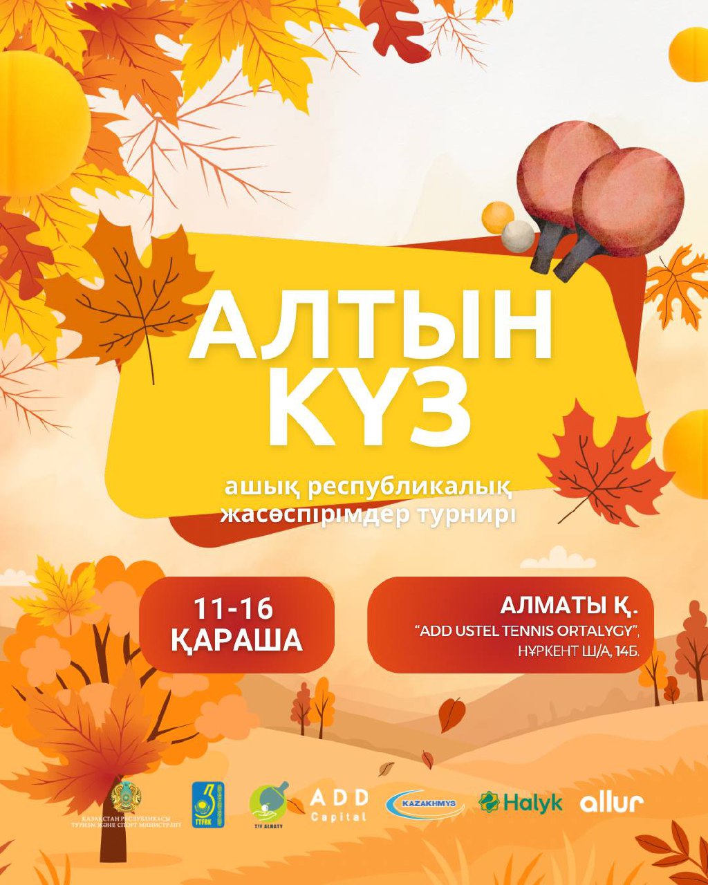 С 11 по 16 ноября в Алматы пройдет открытый республиканский юношеский турнир по настольному теннису «Золотая осень-2025». Это одно из самых ожидаемых спортивных событий осени, которое традиционно собирает сильнейших юных теннисистов со всего Казахстана и из-за рубежа, передает insport.kz со ссылкой на Федерацию настольного тенниса РК.